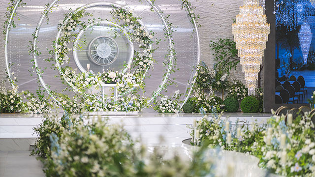섬세하고 특별한 공간 Special Space Photo Zone 3층 포토존 아름다운 기억을 남기는포토스팟, 포토존 찾아주신 모든 축하객들을 위해 그리너리한 트리와 플라워 데코레이션으로 완성된웨딩더낙원의 3층 포토존은그날의 특별한 순간을 더욱 화사하고 품격 있게 담아냅니다.